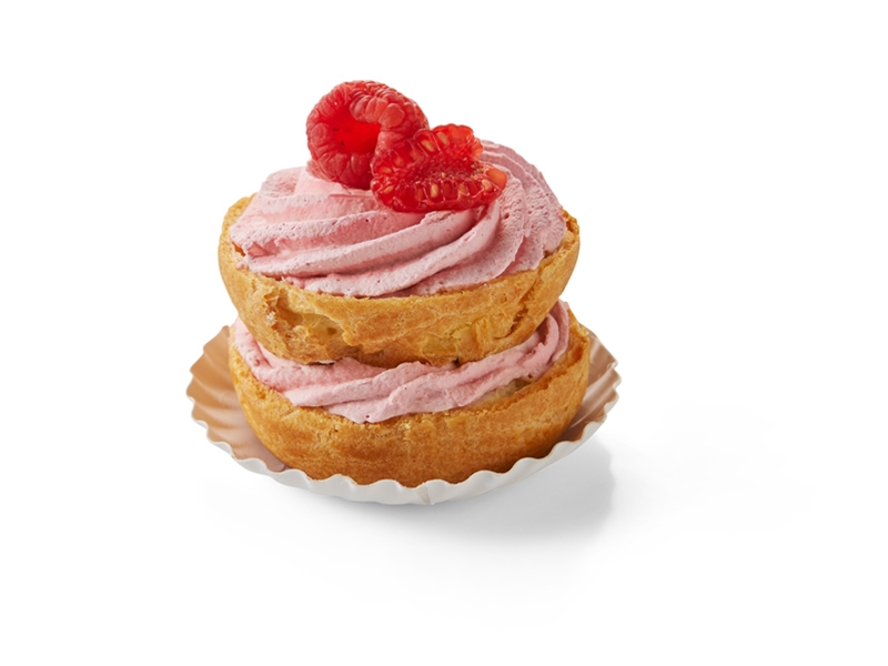 soes gevuld met een mousse van frambozen