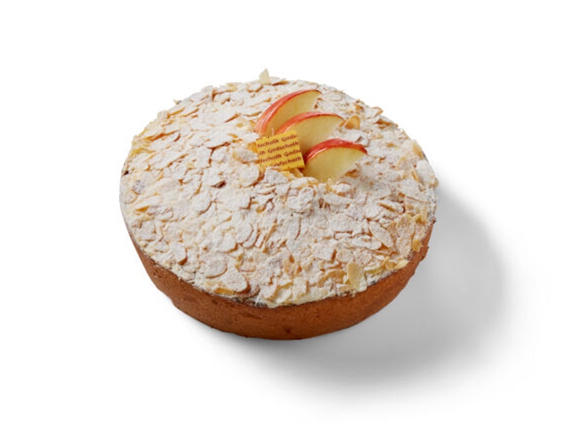Taart gevuld met appels uit de streek, abrikozen en citroen. Bedekt met een soufflee van schuim en banketbakkers room. Afgewerkt met slagroom en krokant amandelschaafsel